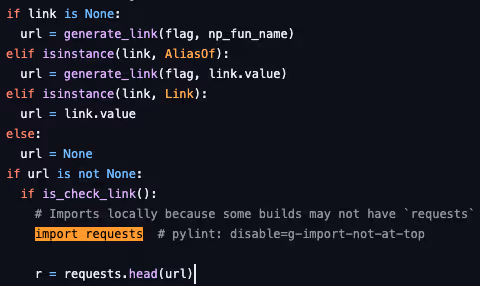 Below is an example of a conditional dependency, requests, that is imported only in some scenarios. The usage is different per use case and application, as the code below demonstrates: