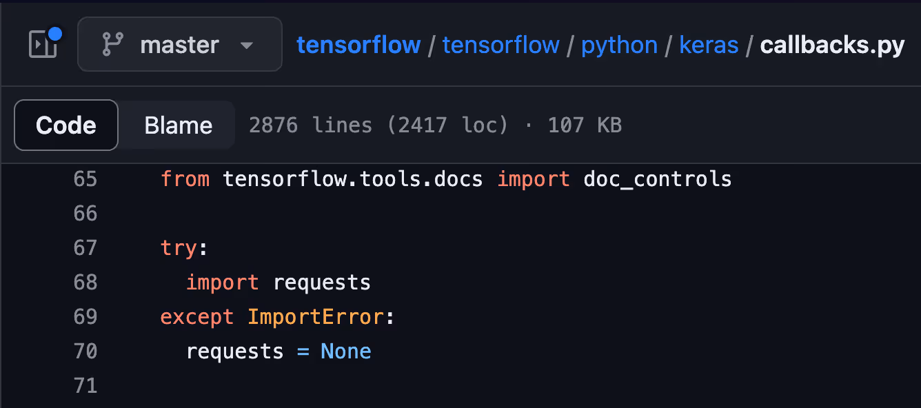 Meanwhile, in other places in the code, TensorFlow imports requests and loads it to memory as soon as TensorFlow is initialized: