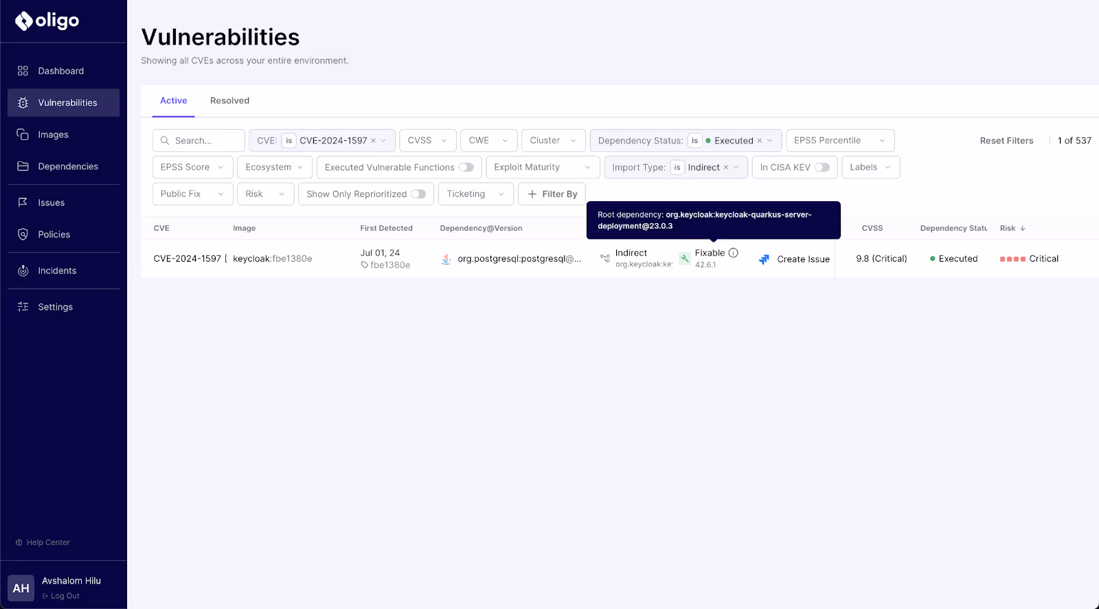 What’s really unique about Oligo’s capabilities is that we actually do all of this discovery of direct/transitive dependencies without needing access to the source code. That means you can see vulnerabilities, and whether they’re from a direct or indirect dependency, in your third-party applications from vendors, not just your own first-party applications.